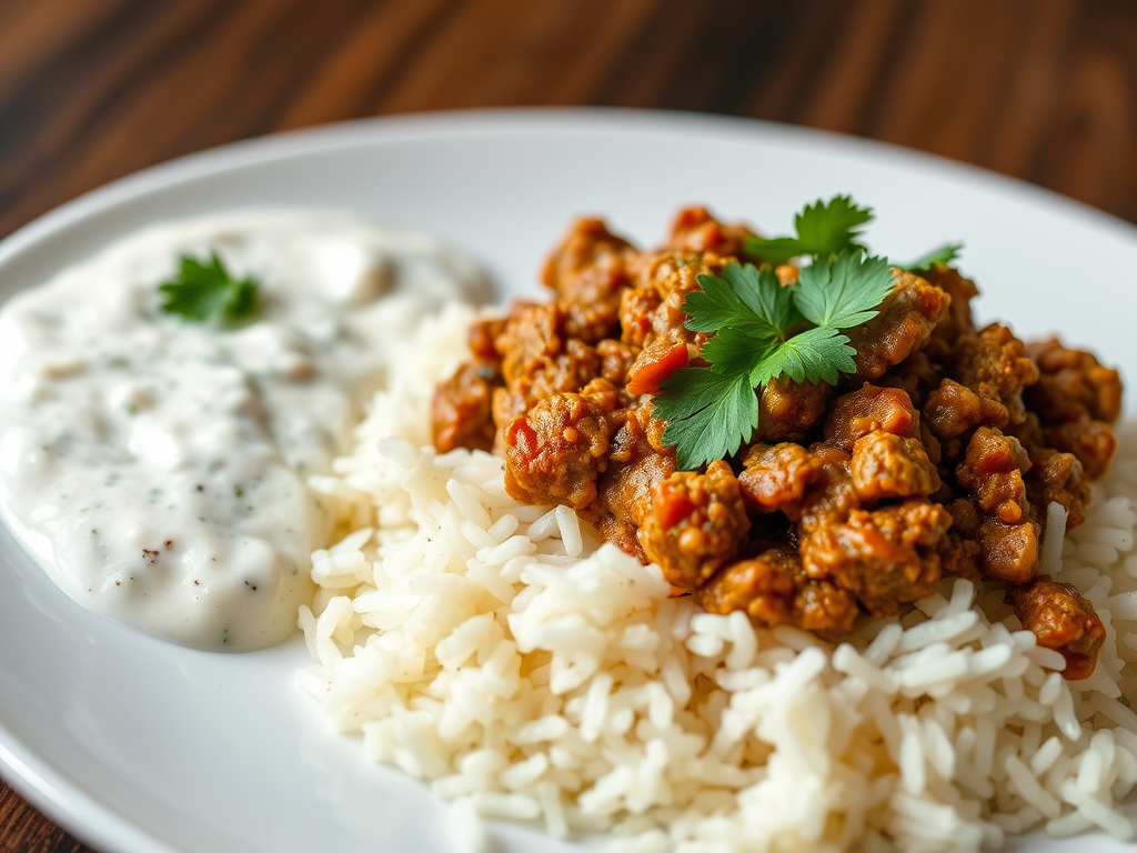 It’s lovely served with my garlic and pea fried rice, plain rice or simply with some naan bread and bulfart (that’s a tomato and onion salad to you! See the recipe, honestly, that’s what it’s called)