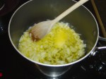1. Melt 100g butter in a saucepan on a low heat and add the finely chopped onion