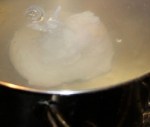 really hot, switch the processor on again and drizzle the mixture in. Now place 110g/4ozs of salted butter in the saucepan and heat gently until really hot, but make sure it doesn’t brown. Switch your processor on again and drizzle the hot butter in and voila, you have Hollandaise. Delia Smith adds her whisked egg whites to the mixture afterwards, and if you like a light texture this works well. Now, you will need a toasted muffin, actually I prefer crumpets and a poached egg. Poach your egg either by using poaching pods, those clever little silicone ones, or try using the traditional method of boiling a pan of salted water then reducing it to a very gentle simmer (enough to cover the eggs) add a teaspoon of white wine vinegar (this helps the white to set quicker round the edges), break you egg in to a cup first and gently slide in to the water, if your water is too hot, the white will separate. Leave for 1 minute, then put a lid on the pan and turn off the heat. Time for 3 to 5 minutes depending on how firm you like your yolk (delia says leave up to 10 minutes). The key thing to remember is that you MUST use fresh eggs, less than 4 days old or they will not poach properly. Finally, assemble your Eggs Benedict and prepare to indulge, this just cries out for a buck’s fizz on the side. One of my favourite variations, courtesy of Katy’s Place, is to substitute the bacon with sliced turkey breast and add several slices of avocado. Save up the calories, it’s worth it!