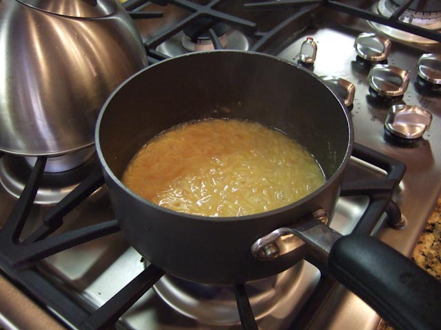Add orzo, cook for 3 mins, stirring constantly.