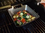 While the chicken is resting, coat the grill wok with oil, empty the veg into wok and place on a grill grate over an active burner at cook for 15 mins.