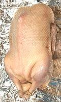 Separate the skin from the breast and the legs of the chicken by gently inserting an index finger under the skin at the neck end. By gently moving your finger around, separate the skin from the meat. Gradually ease your whole hand under the skin, loosening the skin from the breast legs and drumsticks.