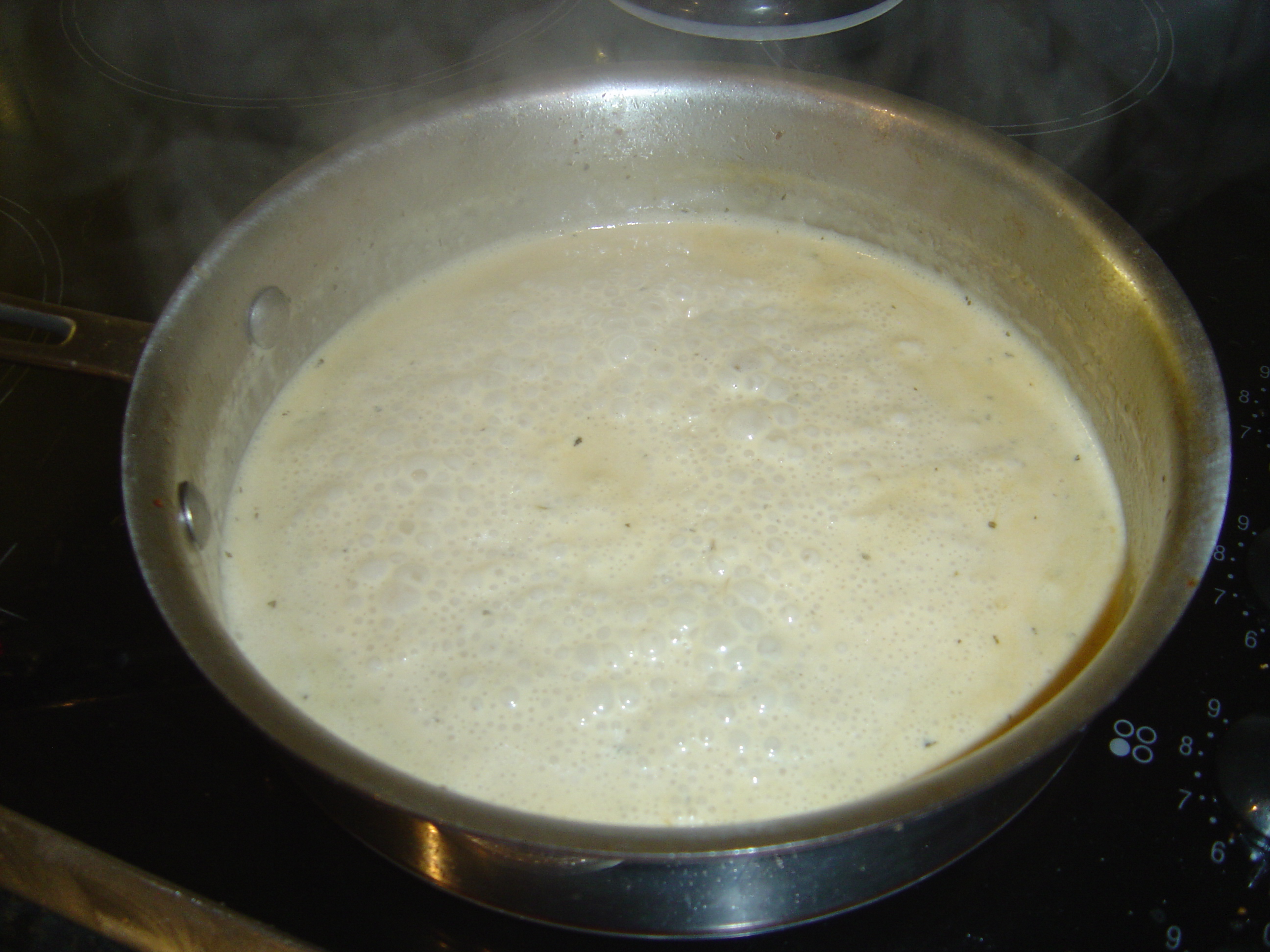 Remove from heat, stir in parmesan, basil, salt & pepper.