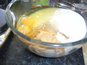 - Add the eggs, vanilla, food colouring (if you want to use it) and flour